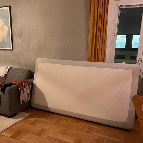 Det finns katter i hemmet och en del slitage på sängen pga detta, se bild.