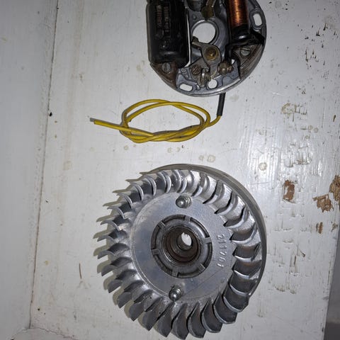 Tändsystem. svänghjul Se märkning. Se bilder. Gissar på att det är till sachs, men det kan husqvarna, ilo, Victoria, mm