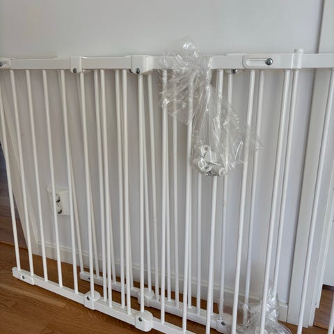 Flex XL Skruvgrind från BabyDan. Sitter idag i 2m öppning, men kan justeras i storlek och sättas runt öppen spis eller liknande.