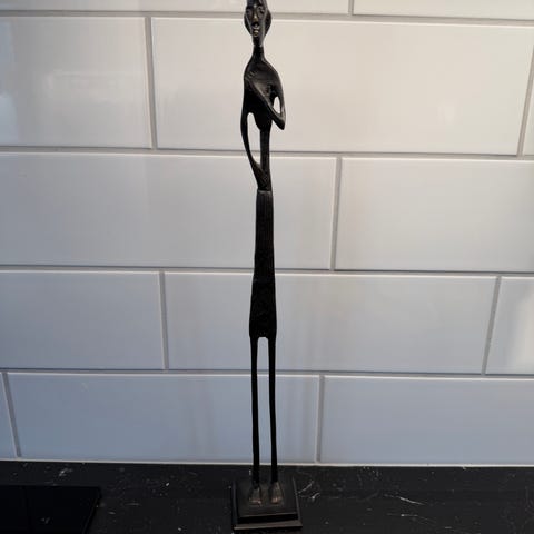 Två dekorativa figurer i svart och vitt, designade i en sittande position. Material och exakta mått är inte angivna. Figuren kan användas som heminredning eller dekorationsdetalj, men är avsett som bokstöd.