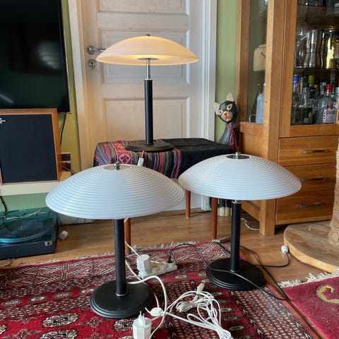 1) mindre lampa i svart metall o kromad stång. Justerbar upp/ner o riktning. 250kr