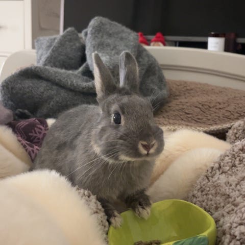 Hej! Detta är Polly, hon är mellan 3-4 månader gammal, vi har endast haft henne 5 veckor och hon säljes endast för att undvika att hon blir skadad av våran sura äldre kanin. Hon är nyfiken, lugn, kommer när man lockar på henne och är duktig på att använda potta( dock ej helt rumsren, men går fritt inne flera h per dag), hon går att bära men tycker det är lite läskigt. Polly har en annorlunda färg, mörkbrun med beige på mage, runt ögonen och öronen. Polly letar efter ett nytt hem med en kastrerad kaninhanne då våran äldre kaninhonan inte tål Polly och vill slåss. Polly är nyfiken och vill gärna gå med de andra kaninerna.