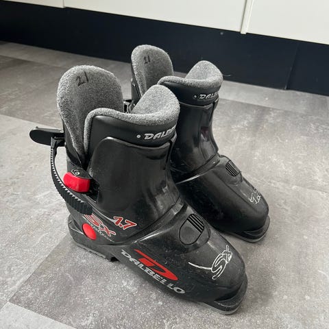 Nordica skidskor för barn. Pjäxorna är svarta med röd innersko och detaljer i grått och rött. Sulmått cirka 221 mm, anpassade för barnbindningar. Ytterskal i plast med justerbar bakre spänne för att hålla foten på plats. Passar utförsåkning/alpinskidåkning för barn.