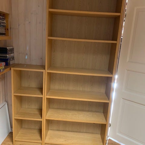 Två bokhyllor Billy ekmönstrade. Som nya,. Finns i Länna för avhämtning. Nypris 1049kr/st