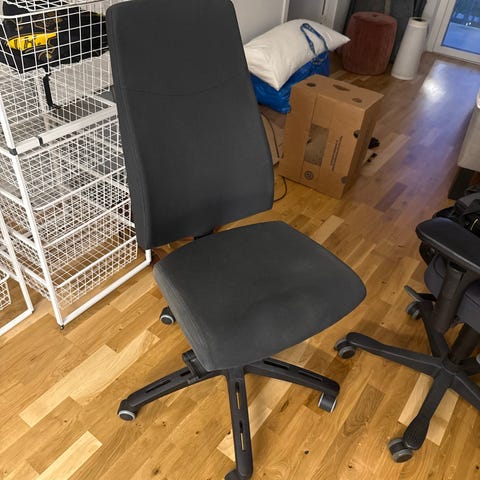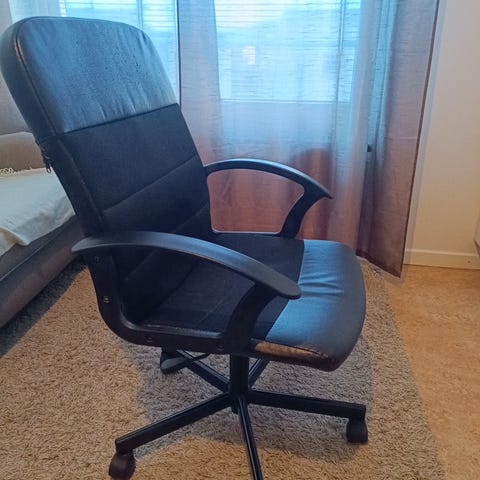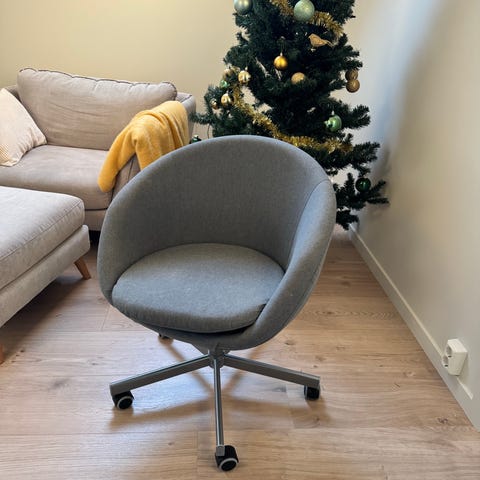 En skrivbordsstol från IKEA, höj- och sänkbar.