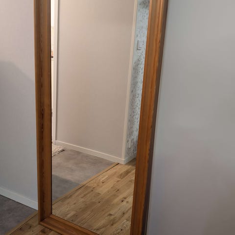 Äldre spegel i massivt trä.
