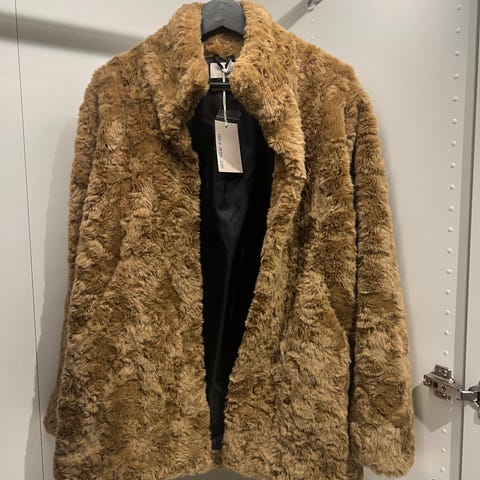 Zara Woman vinterjacka i fuskpäls för dam. Storlek M. Jackan är brun med kraftig, lockig fuskpäls och har huva. Avsedd som ytterplagg för höst och vinter. Insidan har slätt foder för ökad komfort vid användning över tröjor eller andra lager.