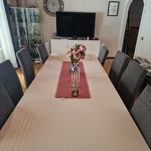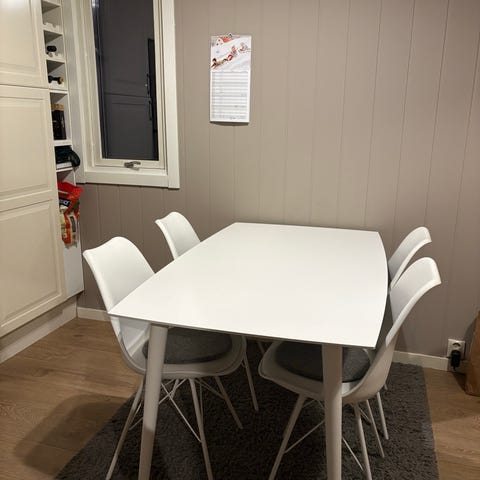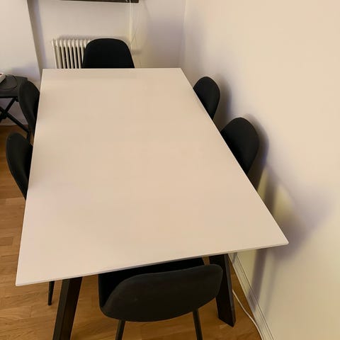 Ikea mörkbrun matsalsmöbel ink 6st stolar och 2st förlängningsskivor .