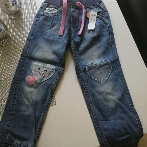 - Jeans, strlk 110. Tvättade men oanvända, 80 kr.