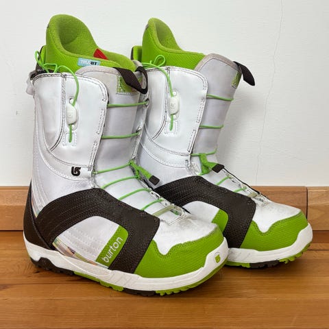 Burton snowboardboots i vit färg. Storlek EU 42 (US 9, UK 8, 27 cm). Klassisk snörning framtill och vadderad insida för komfort. Passar för snowboardåkning i olika backar och för allroundbruk på berget.