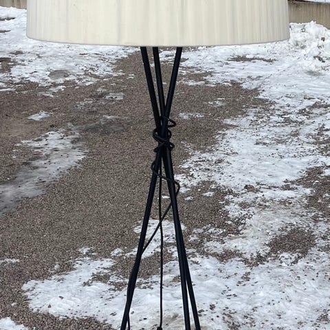 Säljer en vacker golvlampa i klassisk och tidlös design i teak. 158 cm hög. Två glödlampor. Strömbrytaren i snöret och lampan kan tändas i två steg. Tygg skärm 40 cm i diameter. Lyser fint. Liten fläck på foten.Prutat och klart. Djurfritt och rökfritt hem.
