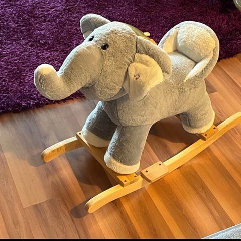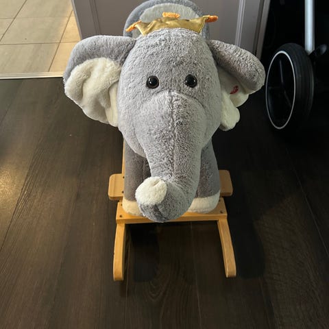 Gungdjur i form av en elefant i mjuk grå plysch. Trämedar i naturfärg ger stabil gungfunktion. Sitsen är stoppad för ökad komfort för barnet. Passar som leksak och inredningsdetalj i barnrum.