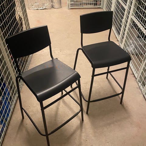 Barstolar från IKEA, modell Sebastian. Sitsar i lackerat böjträ samt kromade ben. Vanligt brukslitage.