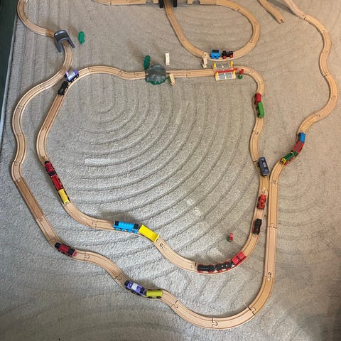 BRIO blandat med IKEA trätåg och tågbana med tillbehör.