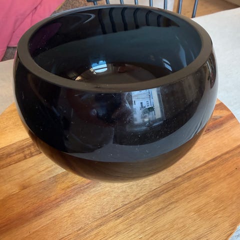 Stelton vad Stockholm Horizon äav Bernadotte & Kylberg. I blå färg, emalj, inspirerad av Stockholms skärgård. Rundad, äggformad design med blank utsida och mörk insida. Passar för snittblommor, torkade växter eller som dekorativ inredningsdetalj i hemmet.