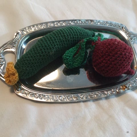 Virkade kakor / mat / leksaker / grönsaker / frukter