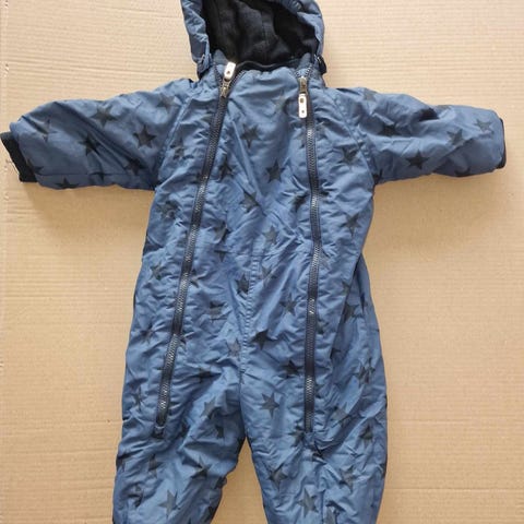 Columbia overall för barn i storlek 86. Yttertyg i polyester med blå basfärg och mönster. Fleecefoder på insidan för extra värme och komfort. Modellen är unisex och passar både flickor och pojkar. Overall med huva och långa ärmar och ben, lämplig för kallare väder och utomhuslek.