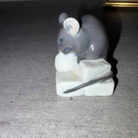 Royal Copenhagen porslinsfigur mus på kastanj