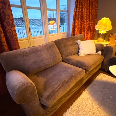Bättre begagnad soffgrupp i sammet säljes till högstbjudande + två fåtöljer!