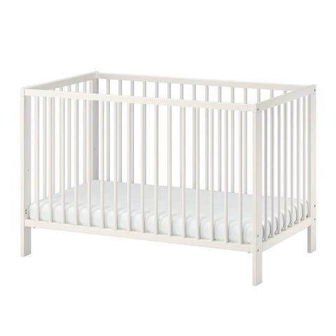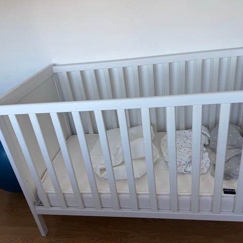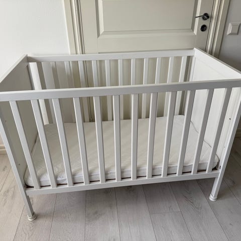 Madrass och spjälsängsskydd ingår i priset.
