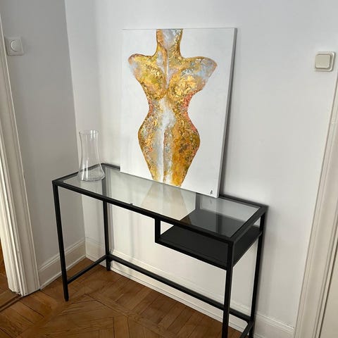 Sidobord ”Ry” i metall och glas designat av Tord Björklund för IKEA. 1980-tal.