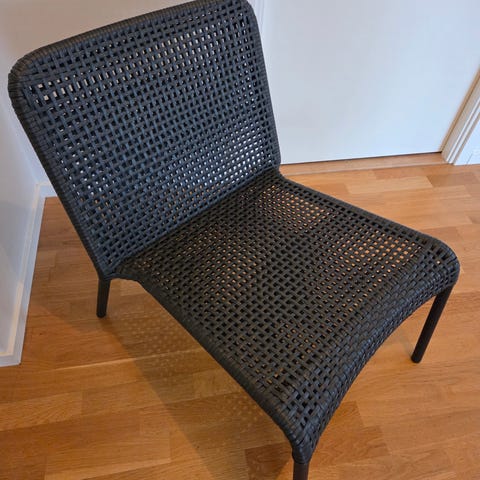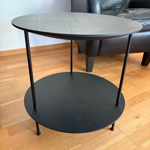 Jättefint sidobord från samarbetet med Hay & Ikea. Kan användas som tidningsställ soffbord eller växtbord. Svart lackat metall.