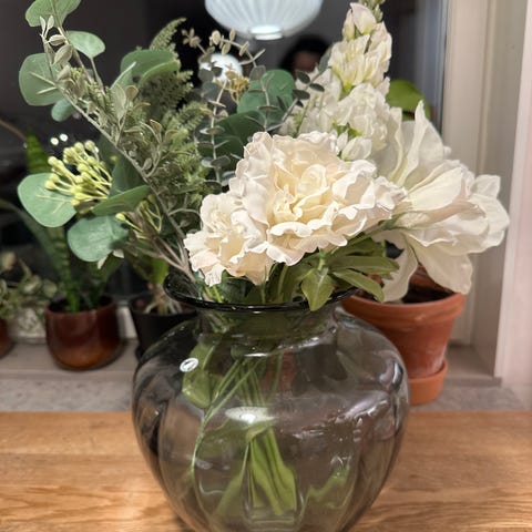 50 cm hög och 16 cm diameter. Brun vas i glas. Kan tas med in till centrala Skövde