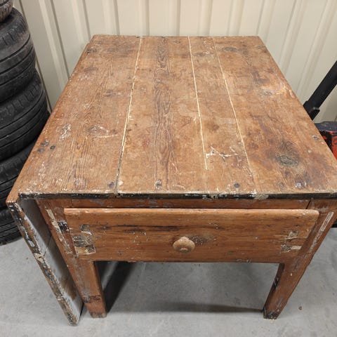 Gammalt gediget klaffbord bestående av ett större matbord och 4 gedigna vitmålade stolar som behöver målas om, Bordet har rektangulär skiva med plats för 8 personer. Stolarna har hög rygg och stoppad sits, mörkblå sammetsklädsel. Mått: 164 x 127.