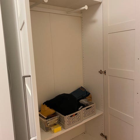 Fint begagnat skick. Ett par märken på kanten av den ena dörrbladet. Speglarna har inga märken.
