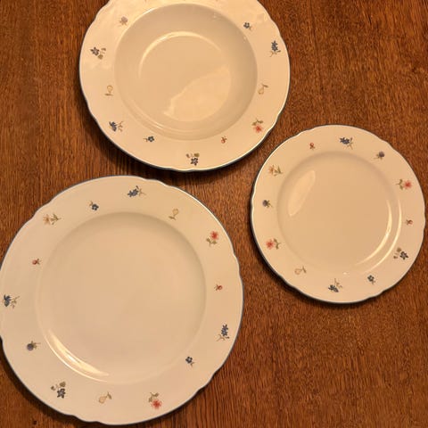 2 underbara tallrikar från Lou Rota/nature.Den rosa med baggar har tyvärr krackelerar i glasyren under ytan.annars fin. Båda säljes till högstbjudande.