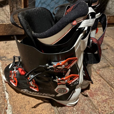 Säljer ett par alpina skidpjäxor: Nordica Speedmachine 8 med Flex Index 100 i storlek 290–295 (sullängd 335 mm).