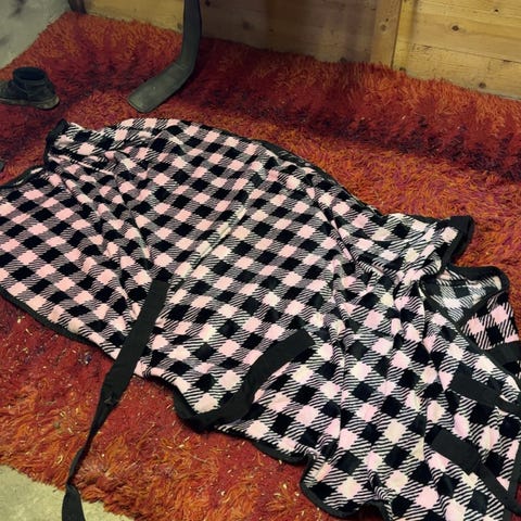 HKM Ladybug flugtäcke i storlek 135 cm. Täcket är vitt med nyckelpigor mönster och är avsett för att skydda hästen mot insekter under varmare säsong. Passar för användning i hage eller vid utevistelse när insekterna är aktiva.