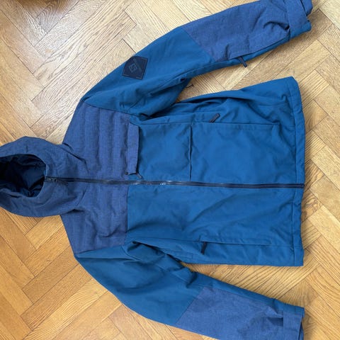 Svart skidjacka med orange detaljer, från Everest. Storlek 158. Lifkortsficka och snölås. Hög krage och blixtlås för ventilation under ärmarna. Höger framficka har tyvärr trasig dragkedja, men i övrigt är jackan i fint skick.