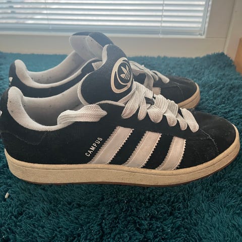 Adidas sneakers i storlek 43. Skorna är svarta med ovandel i textil och syntet samt snörning framtill. Modellen har dragflik bak på hälen och en kraftigare sula som ger stabilitet. Passar för vardagsbruk och lättare träning.
