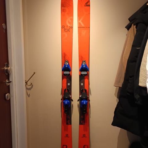 Bindningarna är monterade för pjäxor med sul längd ca 285 mm (justermån finns några mm fram/bak).