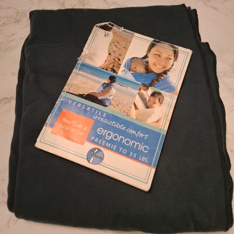 Didymos bärsjal av 60% bomull och 40% linne. 5m lång och 60 cm bred. Har en väldigt ljus blå/grå färg. Varsamt använd, hel och utan missfärgningar och fläckar.