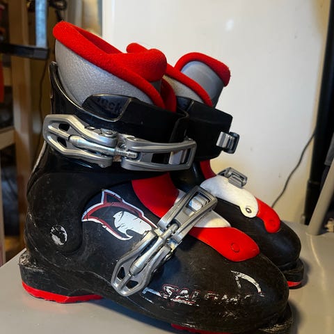 Dalbello pjäxor för junior i storlek 19,5. Modellen har hårt ytterskal med fyra justerbara spännen i metall och plast för stabil passform. Färgen är blå med gula detaljer. Sulan är märkt med längd 235 mm. Passar för alpin skidåkning för barn/junior.