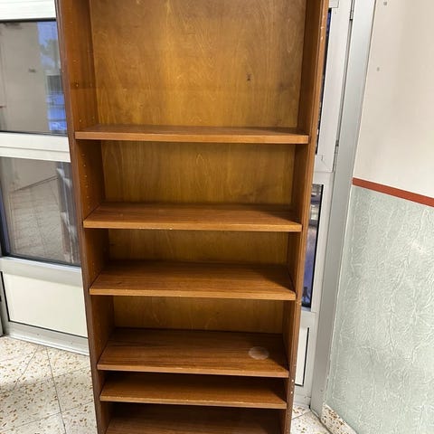 Fin bokhylla med underskåp och lådor i teakfanér. Ytan är nyligen uppfräschad för att framhäva träets lyster. Generellt väldigt bra skick med mindre bruksspår. Som syns på bilderna finns ett litet märke på skivan, en mindre repa på dörren samt en väldigt liten bit fanér som släppt på ena sidan. Men oavsett fint helhetsintryck.