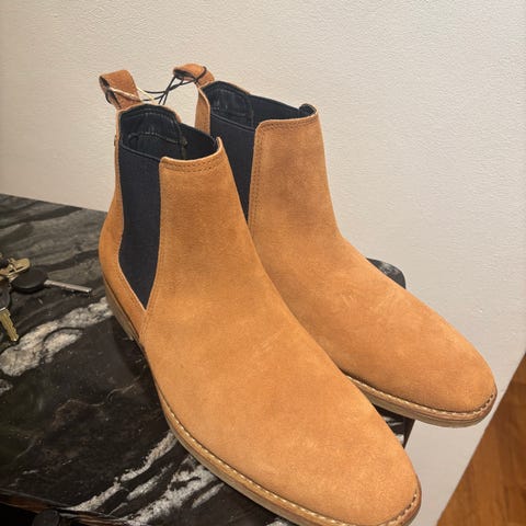 1) Bruna Sebago kängor 'chukka boots' i mycket gott skick, närmast oanvända, vibramsula, US storlek 12, SE 45., saknar skosnören Pris: 1000 kr