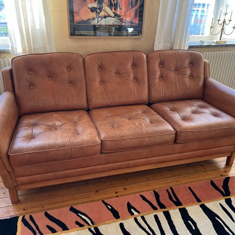 Soffa i fint skick , behövs fixas till i skinn banden och ny dyna