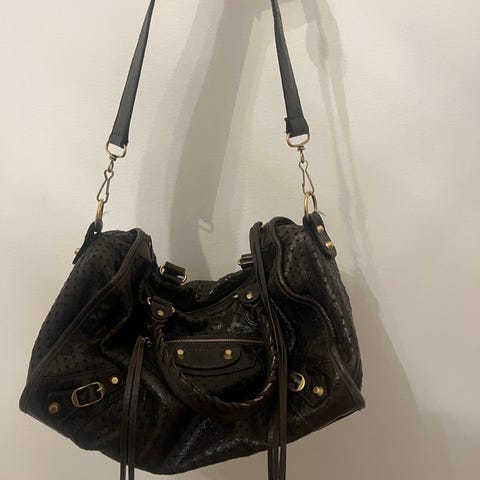 Prisavdrag gjort för slitage, ink avsaknad av en liten läderrem som ska sitta på ena dragkedjan (se bilder). Kommer eventuellt hittas här hemma vid försäljning och kan isåfall återfästas.