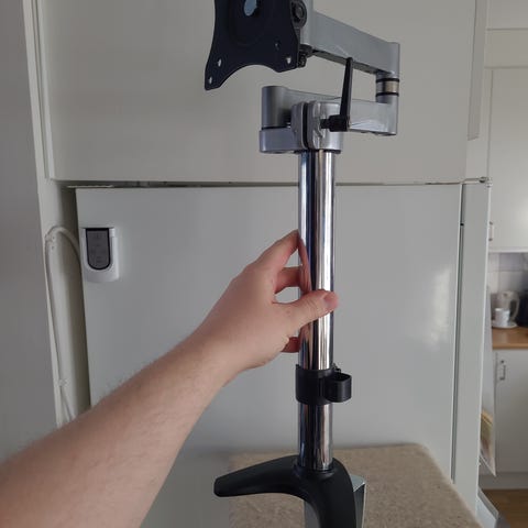 Monitorställ för tre skärmar från 13 till 27 tum, i bra skick utöver några plastclips som är av.