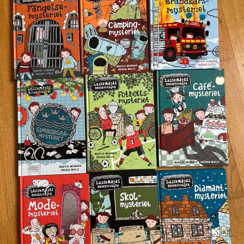 Bokpaket med fyra böcker ur serien LasseMajas detektivbyrå.