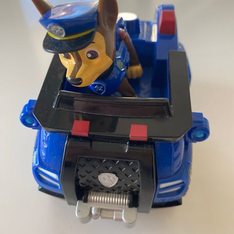 Paw Patrol Rocky fordon med figur i grön plast. Leksaken består av ett grönt fordon med blått cockpit-tak och orange detaljer samt en separat Rocky-figur i matchande gröna nyanser. Fordonet har hjul och är anpassat för att figuren ska kunna sitta i. Passar för barn som gillar Paw Patrol och lek med fordon och figurer inomhus.