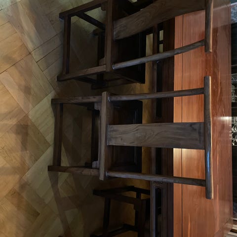 Fyra stolar av okänt ursprung, köpta i antikaffär på 90-talet.