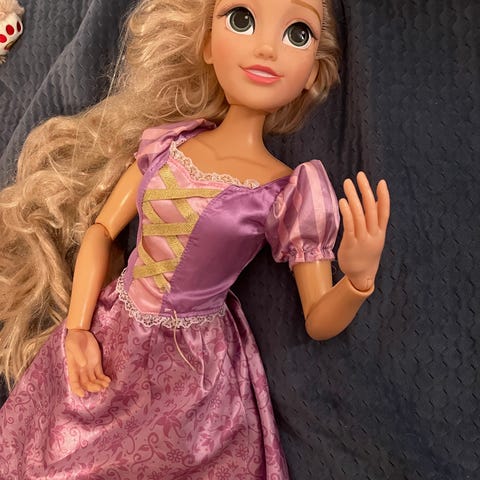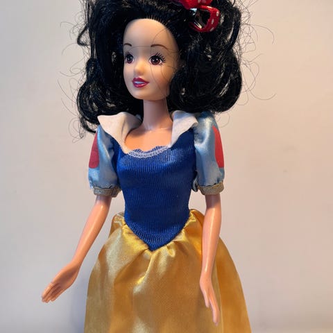 Disney docka föreställande Belle från Skönheten och odjuret. Dockan har långt brunt hår och är klädd i en gul klänning med dekorativa detaljer. Tillverkad i plast med rörliga armar och ben. Passar för lek och rollekar för barn som tycker om Disney-figurer.