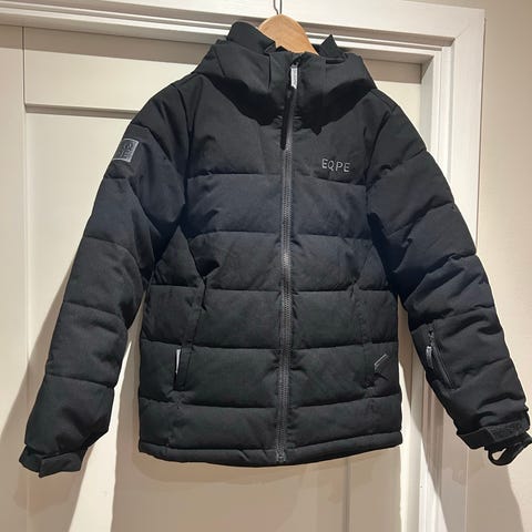 I tvåfärgad design i ljusblå/grå och marinblått för dam. Jackan har fast huva, hel dragkedja framtill och flera dragkedjeförsedda fickor på bröst och sidor. Justerbara ärmslut med kardborre och invändiga muddar. Längre modell som ger extra täckning och skydd vid skidåkning och andra vinteraktiviteter. Material i vädertåligt yttertyg med lätt vaddering på insidan.