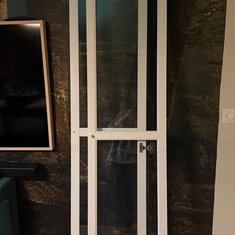 Shoji rumsavdelare i vit färg. Består av släta paneler indelade i sektioner med frostad del överst för mer ljusinsläpp. Passar perfekt för att dela av sovrum eller kontorsdel i vardagsrum mm.