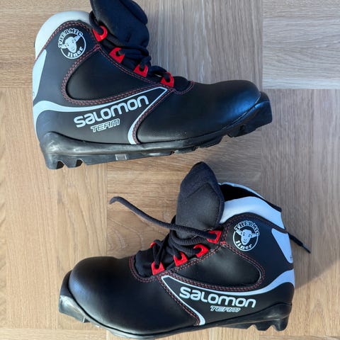 Salomon Prolink längdpjäxor i svart med röda detaljer. Pjäxorna är avsedda för längdskidåkning och har Prolink-bindningssystem med tåfäste fram. Ovandel i syntetmaterial med snörning och vadderad plös och skaft för ökad komfort. Grovmönstrad yttersula för bättre grepp vid gång. Passar för användning med Prolink-kompatibla längdskidor.