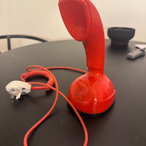 En tidig modell med sladden i samma färg som skalet.